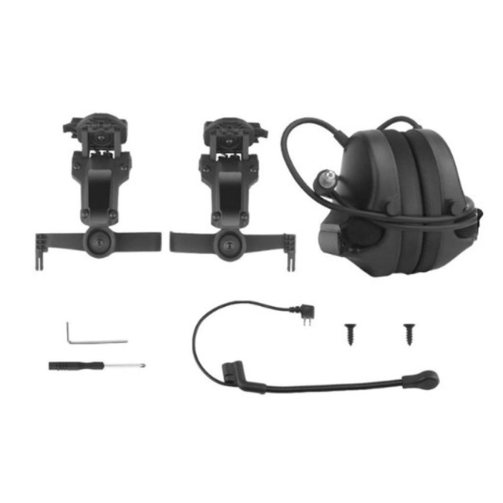 O fone de ouvido tático headset Wosport Tactical C5 preto foi projetado para usuários que valorizam conforto e conveniência. Por esse motivo, a faixa de cabeça foi dispensada e, em vez disso, o kit inclui um adaptador de fone de ouvido montado no capacete, que foi equipado com trilhos do tipo ARC/TW.