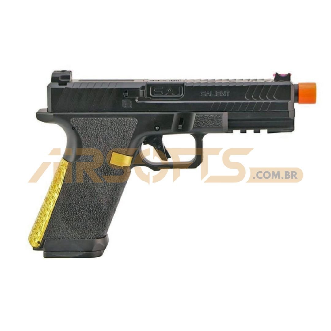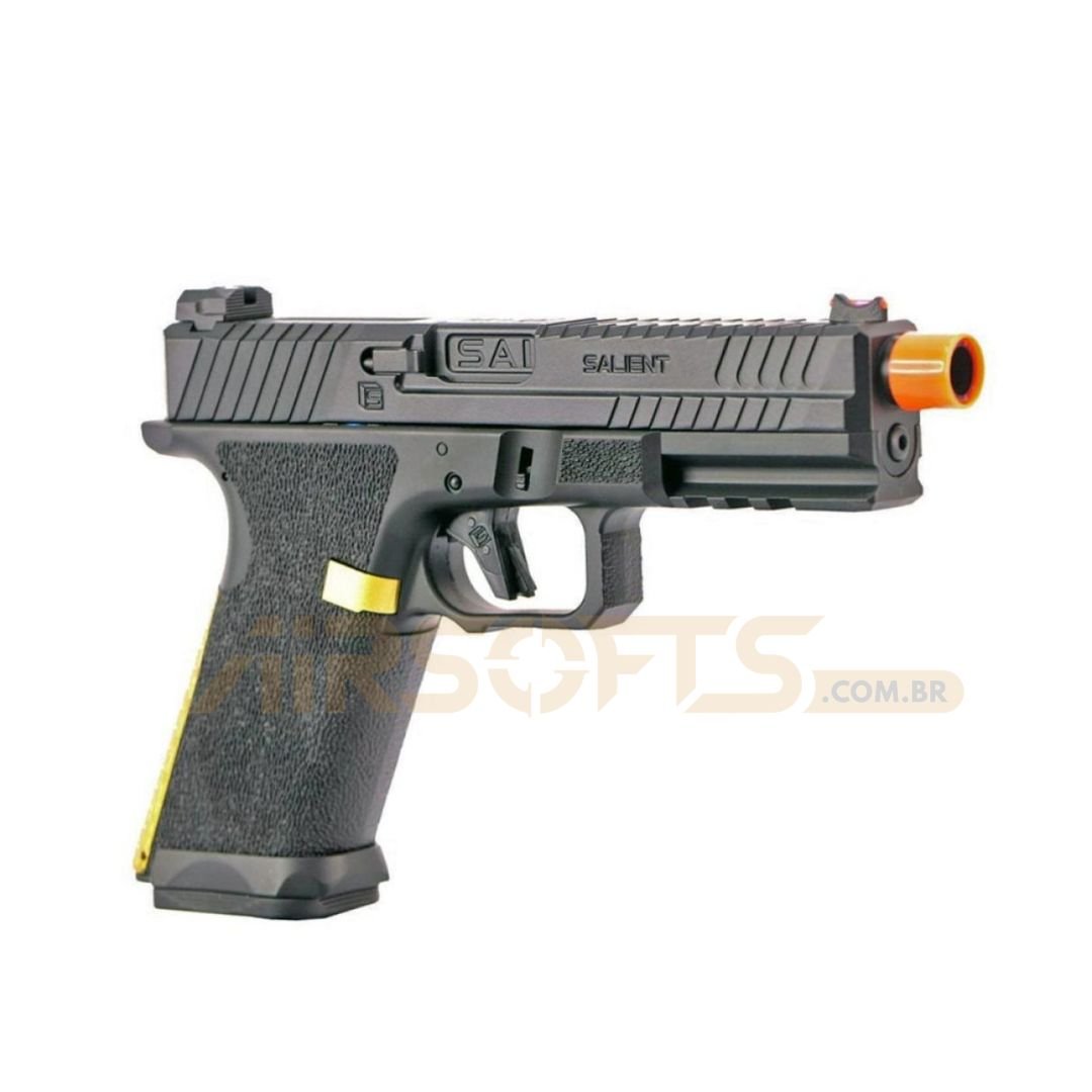 Versátil, a SAI BLU oferece modos Semi e Full Auto com seletor no próprio slide, além de mira frontal de fibra óptica para aquisição rápida de alvo. O trilho inferior permite instalar lanterna ou outros acessórios, e a rosca 14 mm CCW deixa o conjunto pronto para supressor ou tracer. Se você busca uma AEP compacta, moderna e com desempenho confiável, a SAI BLU é a escolha certa para dominar cada missão.
