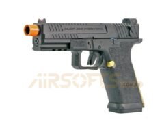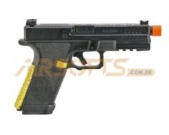 Com slide em metal e frame em polímero de alta resistência, a construção é robusta e realista. As serrilhas agressivas, a empunhadura texturizada e as correias traseiras intercambiáveis garantem controle e conforto em qualquer cenário. O MOSFET integrado protege os componentes internos, melhora a eficiência elétrica e proporciona resposta de gatilho mais nítida, enquanto o hop-up ajustável assegura trajetória estável e precisão consistente.